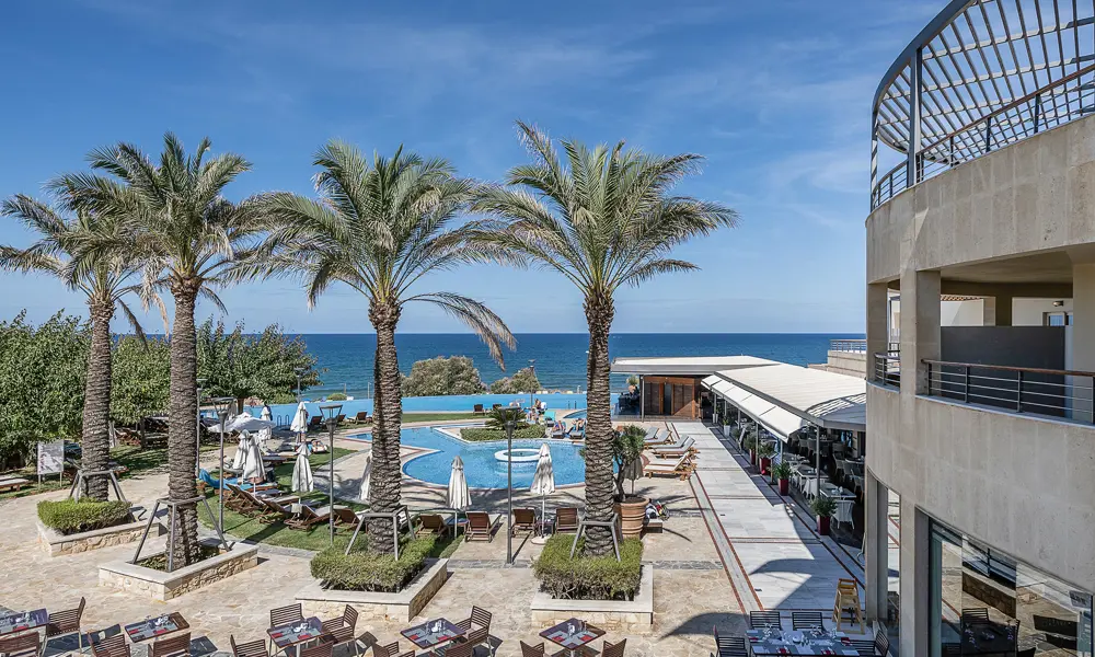 Cretan Dream Resort & Spa är vackert beläget i Kato Stalos, endast ca. 7 km från Chania och bara 50 meter från en lång, gyllene sandstrand. Hotellet erbjuder ett stort, öppet och inbjudande poolområde med infinitypool och fantastisk havsutsikt, där du kan koppla av, ta ett dopp och njuta av poolbaren.