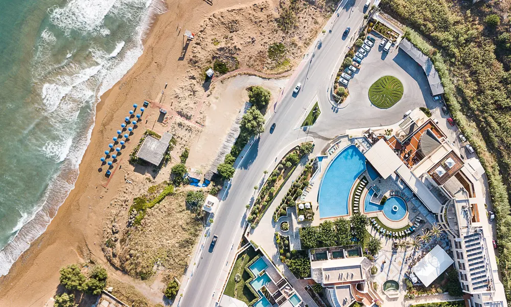 Cretan Dream Resort & Spa har ett perfekt läge vid Chaniakusten, direkt vid den kilometerlånga, gyllene sandstrand som förbinder Kato Stalos och Agia Marina.