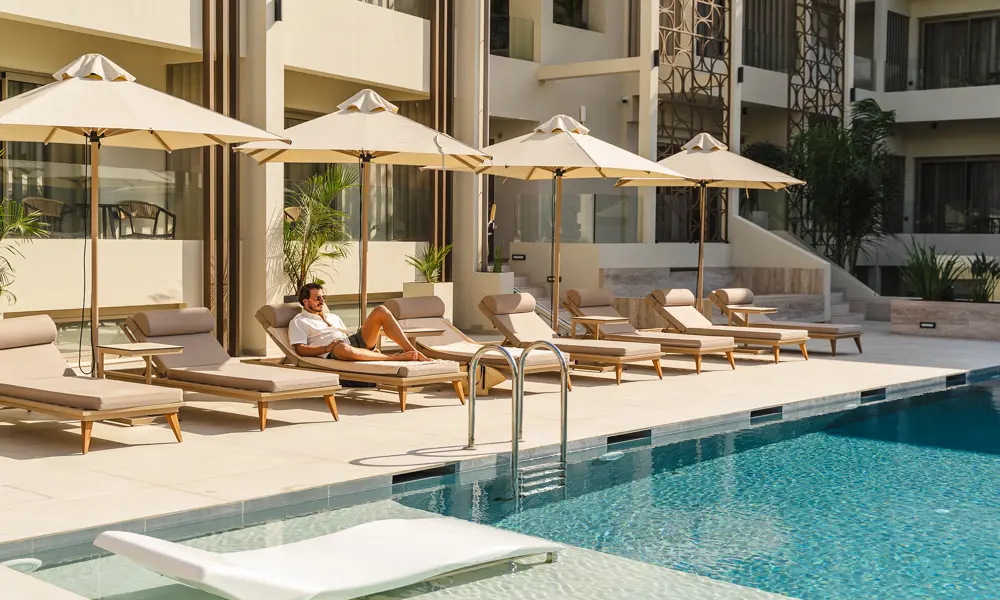 Inea Sole Boutique Hotel har ett inbjudande poolomrÄde med bekvÀma solstolar och parasoller, perfekt för avkoppling och solbad. Med bara 250 meter till Glaros lÄnga sandstrand kan du enkelt vÀxla mellan poolen och sanden mellan tÄrna, och om du vill uppleva fler strÀnder ligger bÄde Iguana Beach och andra hÀrliga sandstrÀnder inom gÄngavstÄnd frÄn hotellet.