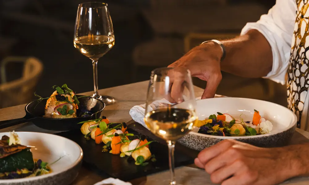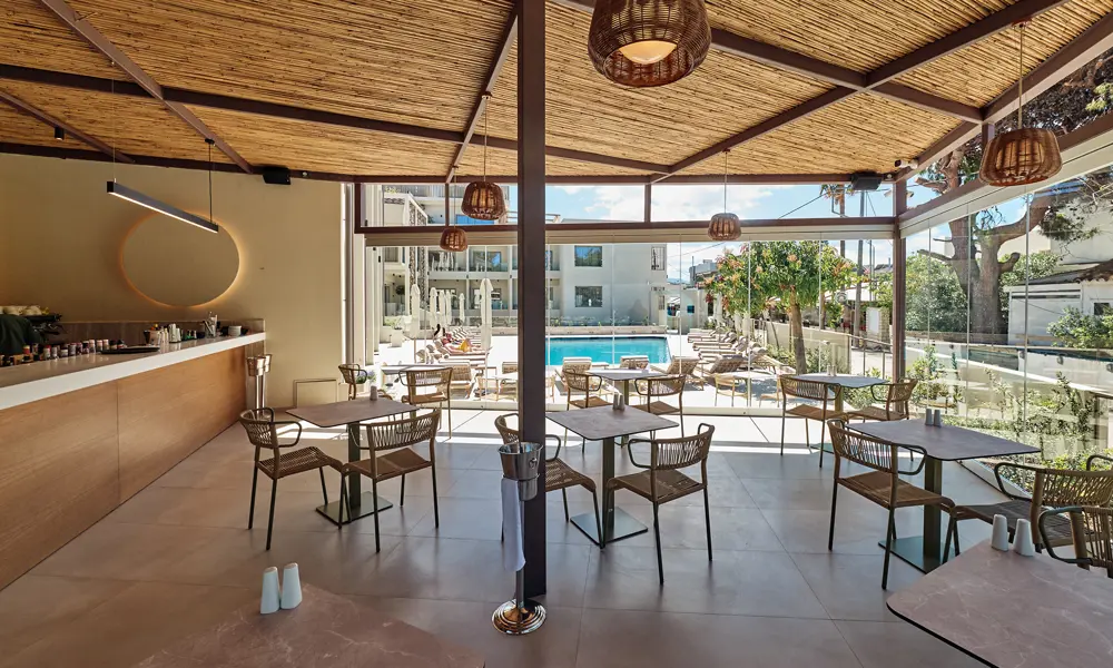Den vÀlkomnande atmosfÀren fortsÀtter Àven i hotellets restaurang och bar, som Àr elegant belÀgen i förlÀngningen av poolomrÄdet. HÀr kan du njuta av fantastiska matupplevelser hela dagen frÄn frukost till middag samt drycker och snacks.