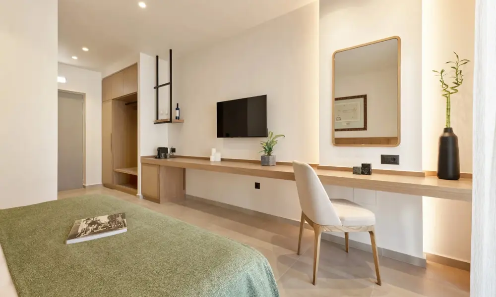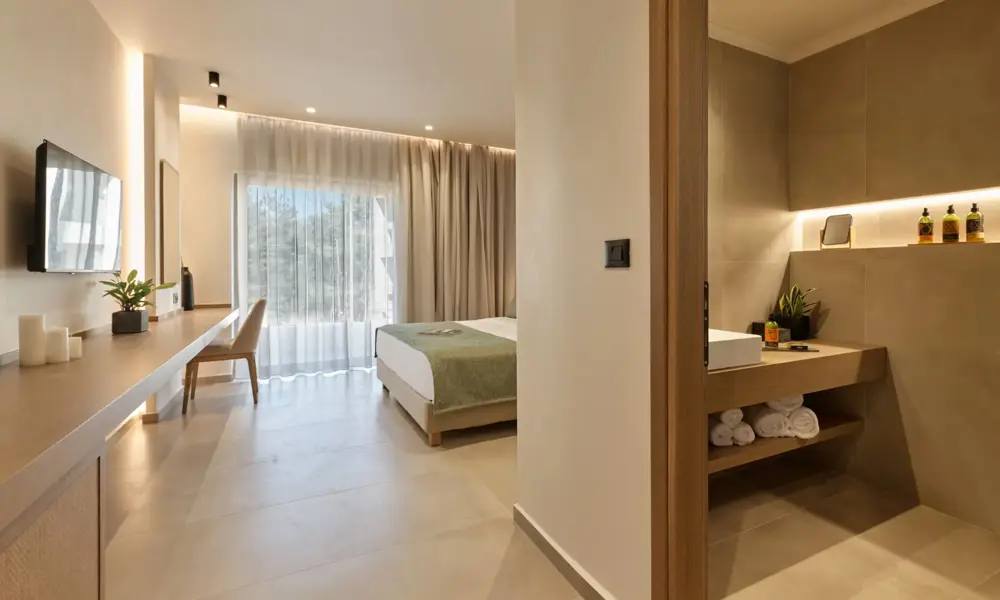 VÀlkommen in i ett av hotellets ljusa och rymliga rum, dÀr modern komfort möter noggrant utvalda inredningsdetaljer. VÀlj till exempel ett hÀrligt dubbelrum med balkong och poolutsikt eller njut av din vistelse i en juniorsvit i tvÄ vÄningar med balkong. Alla rum Àr vÀlutrustade med bland annat minikylskÄp, kapselmaskin för kaffe, vattenkokare, platt-TV, hÄrtork samt gratis Wi-Fi, luftkonditionering och vÀrdeskÄp.
