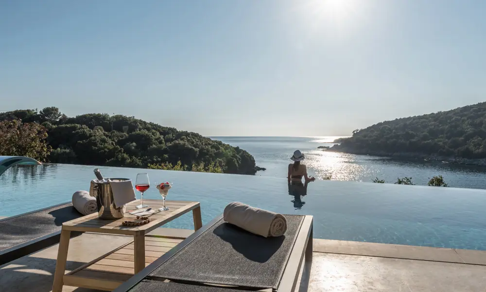 Se fram emot de vackra junior suiterna med havsutsikt och privat pool (6 x 3,5 meter och 1,5 meter djup). Junior suiterna Àr 36 m2 och har antingen en dubbelsÀng eller 2 enkelsÀngar. Det finns möjlighet till en extrasÀng pÄ soffan;