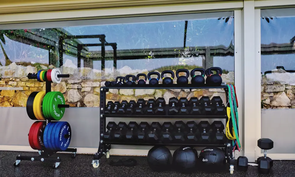 För dem som vill hÄlla sig i form pÄ semestern har Mövenpick Resort Agios Nikolaos Sivota byggt ett vackert utomhustrÀningsomrÄde med vikter, trÀningsmaskiner och yogafaciliteter.