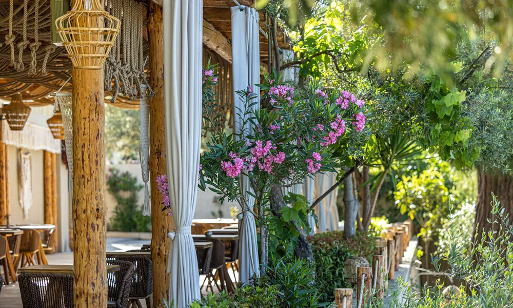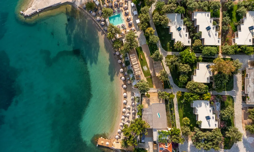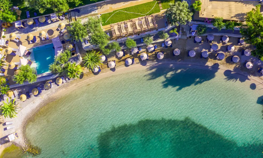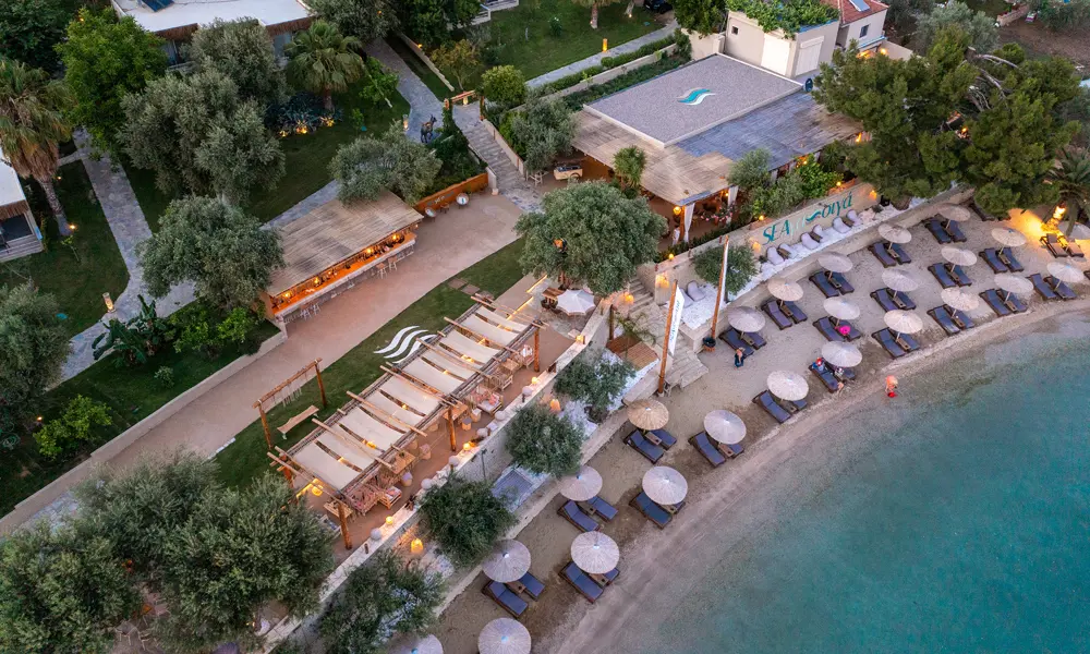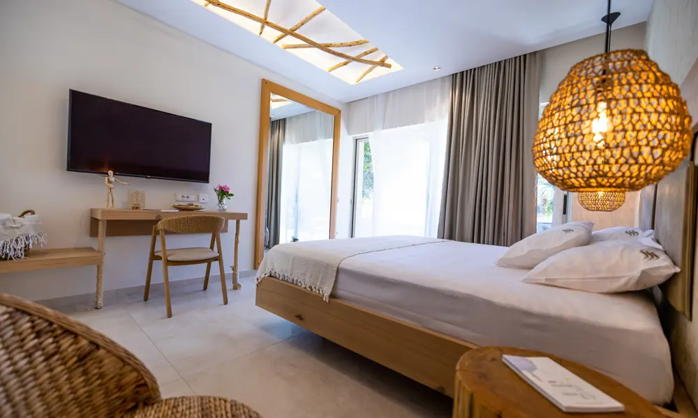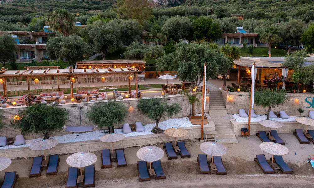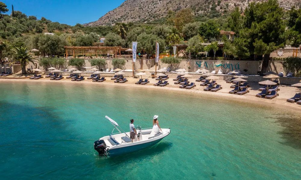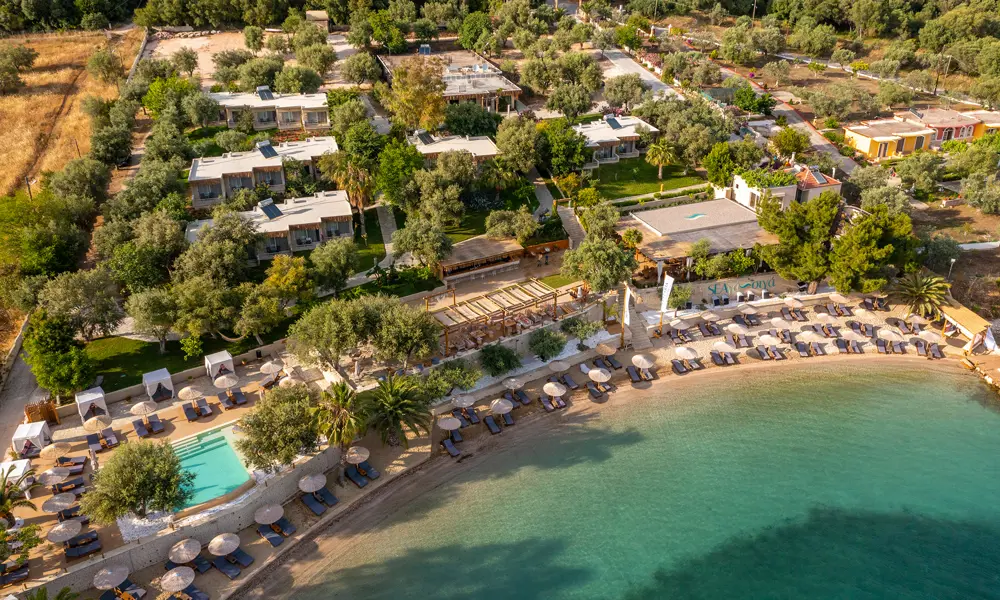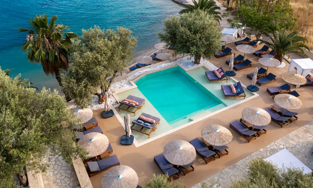 Plataria Seaside Resort pÄ Greklands vÀstkust Àr avslappnad lyx i unika omgivningar. Semesterparadiset i bohemisk stil ligger 13 km frÄn Sivota och erbjuder en sandstrand, utsökta matupplevelser och en infinitypool för vuxna (16+).
