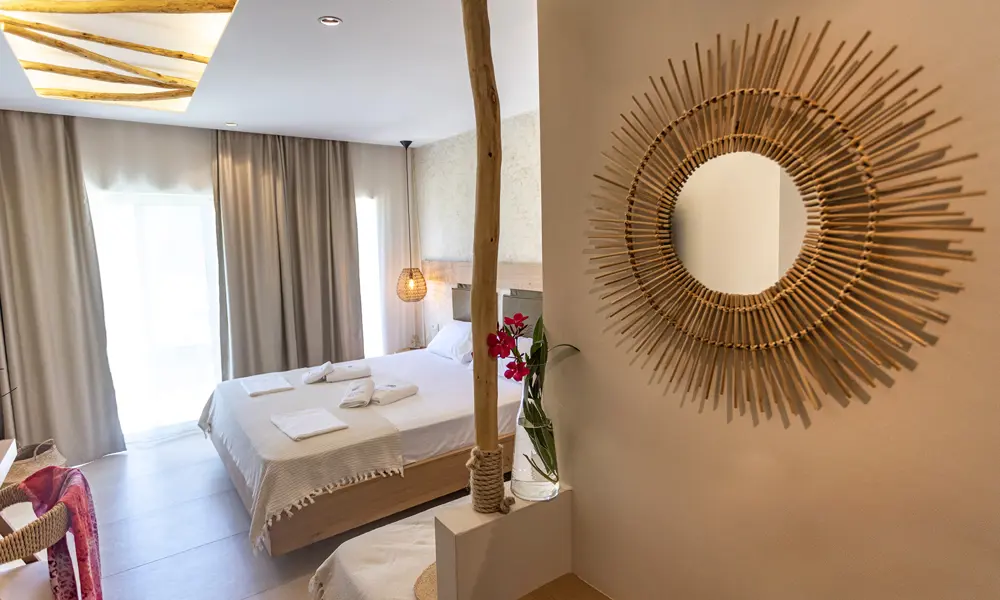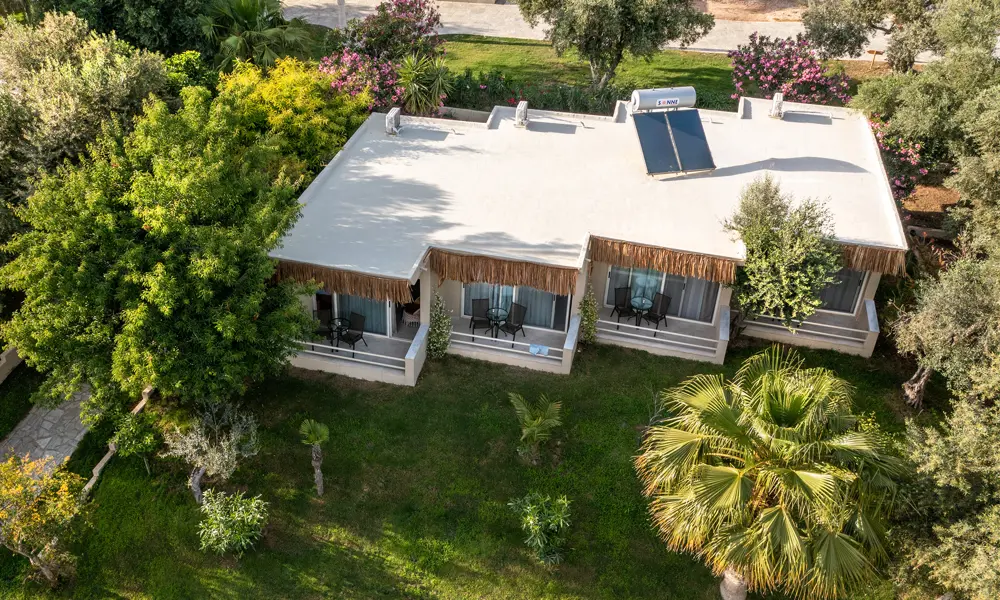 Hotellets 22 rum Àr fördelade pÄ 5 byggnader och ligger i 3 rader. Superiorrummen med delvis havsutsikt ligger i den frÀmre raden och vetter mot det gemensamma omrÄdet med restaurang, lounge, strand etc.