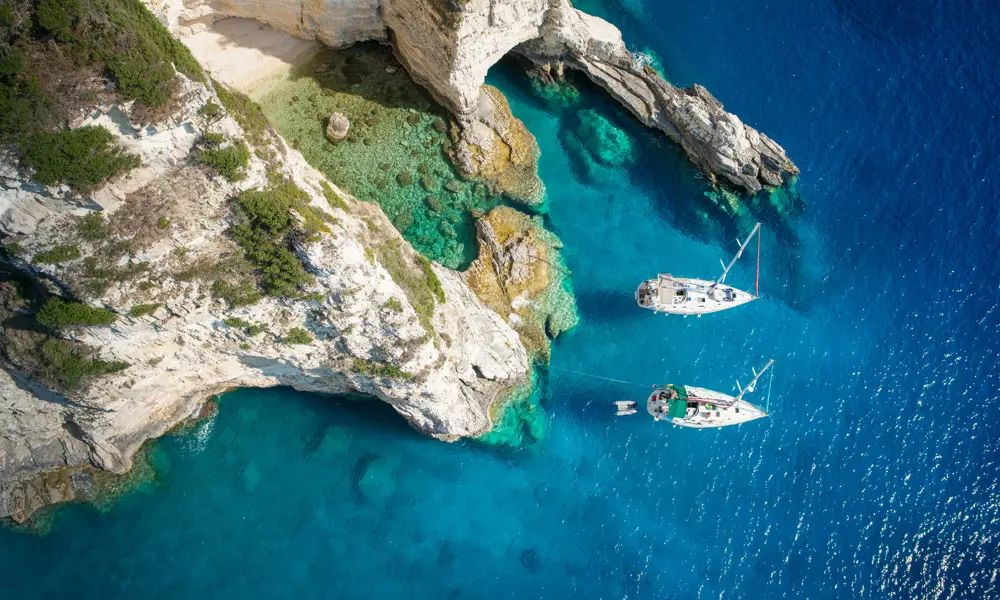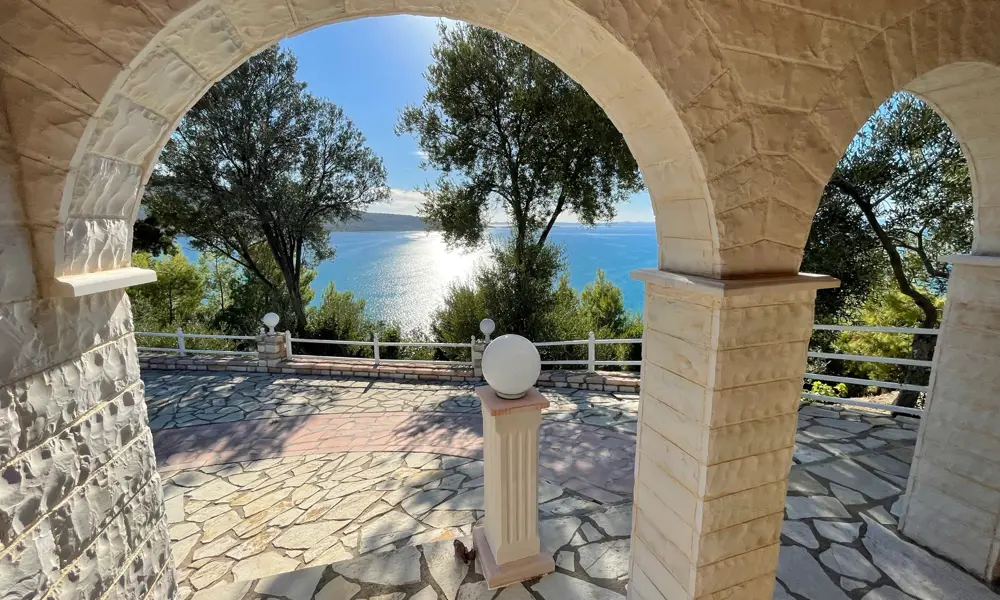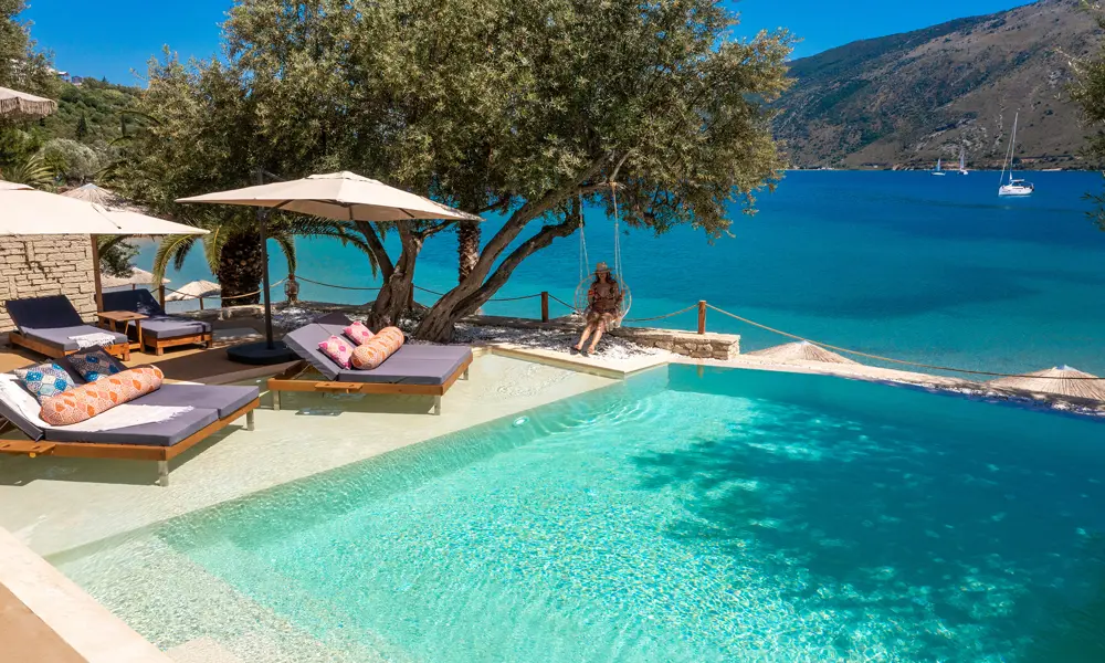 SÀnk ner kroppen i poolen, vila armarna pÄ kanten och njut av den hisnande utsikten över bergen och Joniska havet. Om du vill simma lÄnga varv rekommenderar vi att du simmar i havet. Poolens omgivning och storlek Àr mer lÀmpad för avkoppling.