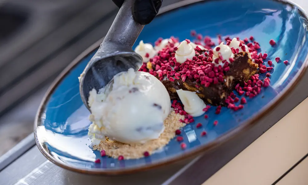 Det finns gott om alternativ nÀr det gÀller att stilla hungern och njuta av sötsuget. Den mysiga uteserveringen med bekvÀma soffor, havsutsikt och en bar erbjuder alla typer av drycker och kaffespecialiteter. Dyk ner i menyn och bestÀll din favorit.