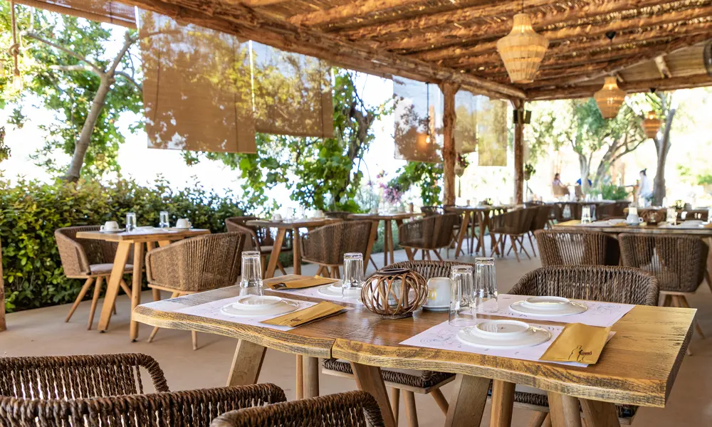 Frukost ingÄr i vistelsen och hÀr sparas det inte pÄ nÄgonting. Restaurangen ligger pÄ första parkett till havet, dÀr morgonsolen flödar in i restaurangen mellan palmbladen.