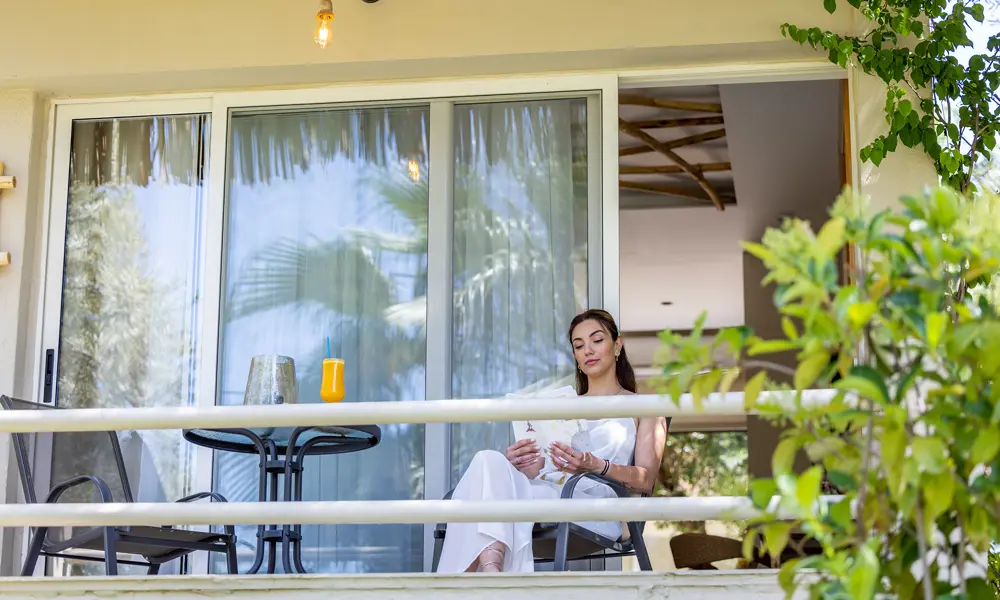 Skjut de stora skjutdörrarna Ät sidan, kliv ut pÄ balkongen och njut av grönskan och fÄgelsÄngen. Flera rum har ocksÄ havsutsikt, och mot en extra kostnad kan du vÀlja rum med delvis havsutsikt.