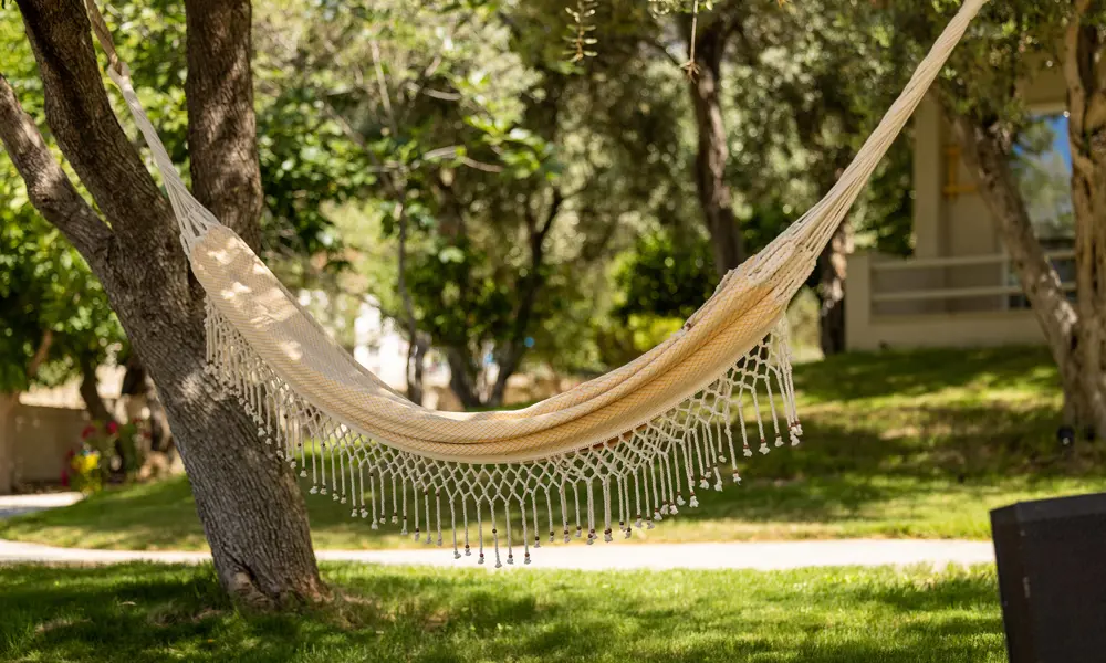 Med utsikt över havet, stora bekvÀma solstolar och vackra olivtrÀd Àr poolomrÄdet den perfekta platsen för att koppla av och fördjupa sig i en god bok.