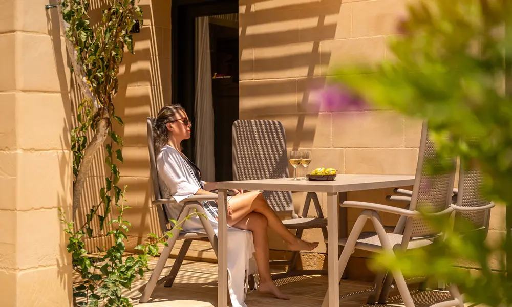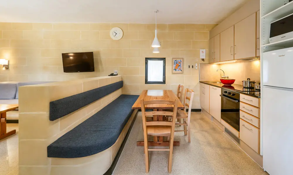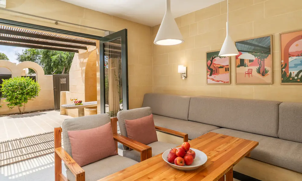 2-rums semesterhusen frÄn 2019 har samma sydliga charm som resten av semesterbyn och Àr byggda i maltesisk stil med gul kalksten, mysiga innergÄrdar och takterrasser. Semesterhusen ligger i harmoni med resten av semesterbyn - nÀra sandstranden, det gemensamma omrÄdet med pooler och reception.