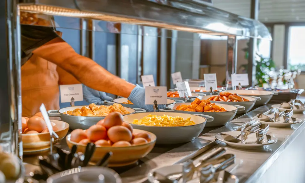 Om du har uppgraderat med mÄltider kan du Àta frukost och middag i restaurangen Great Dane. Frukost serveras som buffé, lunch serveras i Hansen Gastro bar, dÀr du vÀljer frÄn menyn. Middagen kan vara antingen tallrik eller buffé.
