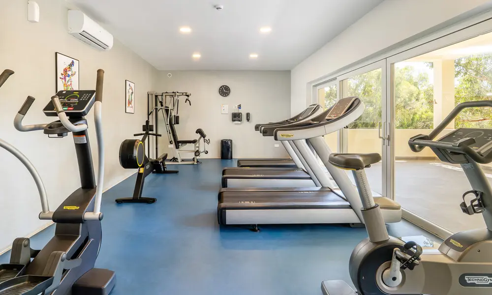 Om du vill komma i form under semestern kan du göra det i semesterbyns nya 93 m2 stora fitnessrum.