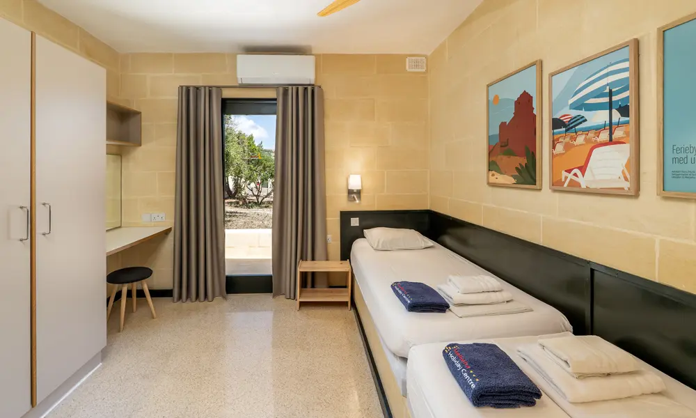 PÄ Mellieha Holiday Centre pÄ Malta kan du vÀlja mellan vÄra vackert belÀgna 70 m2 stora semesterhus med egen innergÄrd och takterrass, 2-sovrums semesterhus pÄ 55 m2, 1-rumslÀgenheter pÄ 30 m2 samt dubbelrum pÄ 20 m2. Enstaka semesterhus Àr sÀrskilt lÀmpliga för rullstolsburna.