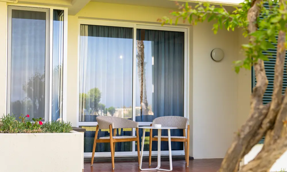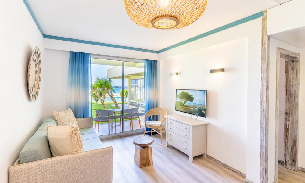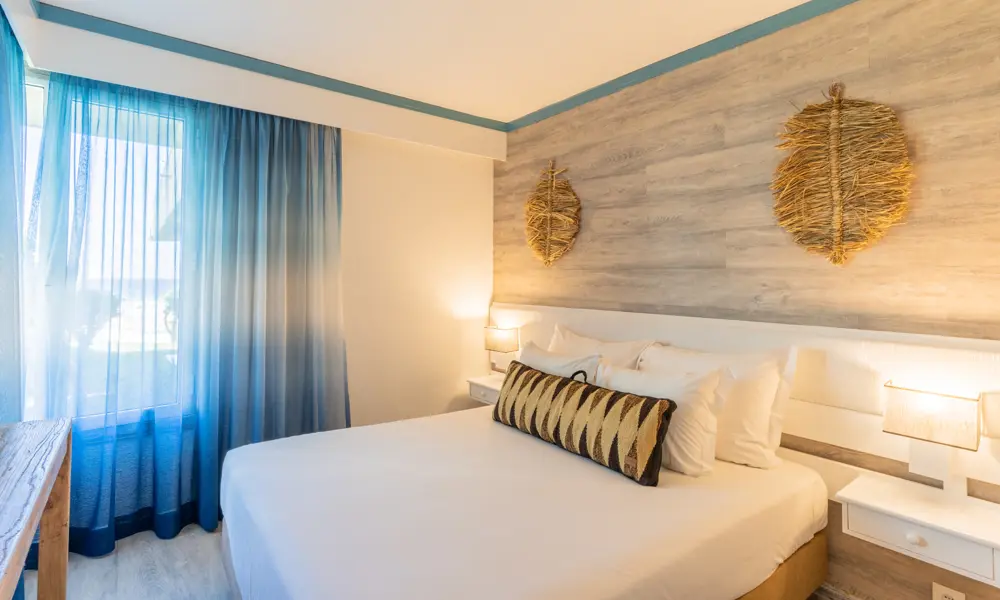 Alla hotellets ljusa 2-rumslÀgenheter Àr 37 m2 stora och vÀlutrustade med vardagsrum med pentry, separat sovrum, badrum och balkong eller terrass. Din vistelse inkluderar fri tillgÄng till öns utmanande golfbana och den kommunala padel- och tennisanlÀggningen, som ligger nÄgra kilometer frÄn hotellet.
